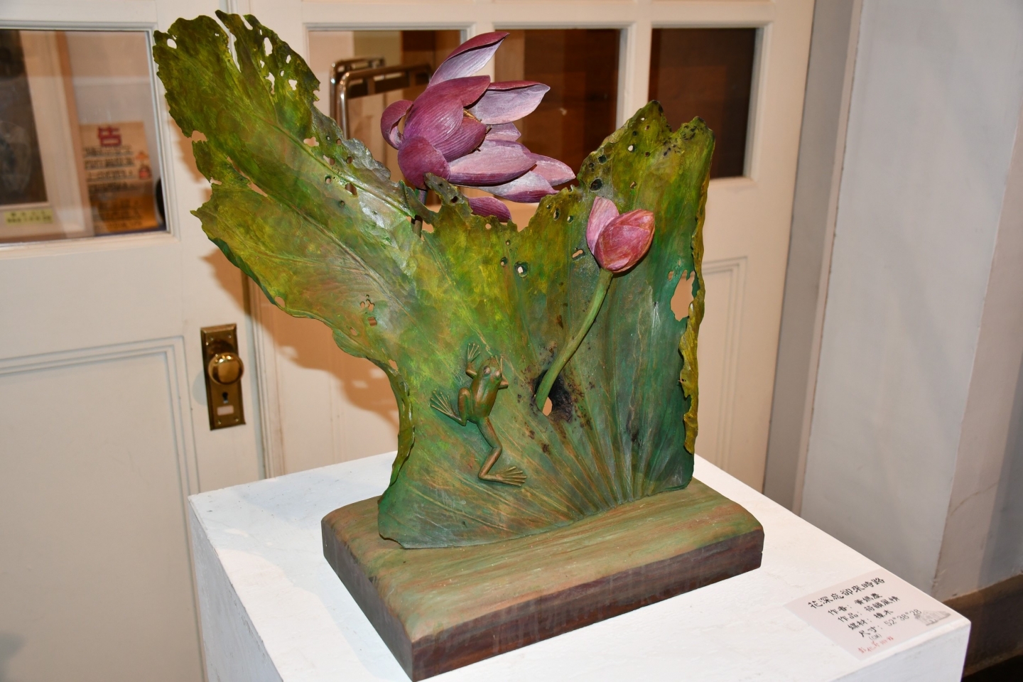 本次展覽回顧黃老師六十年創作歷程,題材多元,其中以蓮花系列作品最具代表性。透過長年觀察自然生態與生活景致,並不斷精進構圖與技法表現,使原本質地堅硬的木材轉化為姿態生動、層次細膩的藝術作品,展現蓮花清淨堅韌之意象,深獲各界好評。